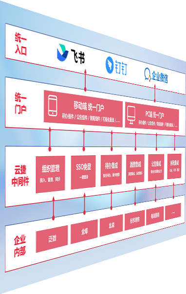 对协作平台提供支持服务,,,支持企业应用与协作平台对接,,,,包含组织同步、、消息集成、、、待办集成等。。。。支持目前主流的协作平台:钉钉、、、、企微和飞书。。。。